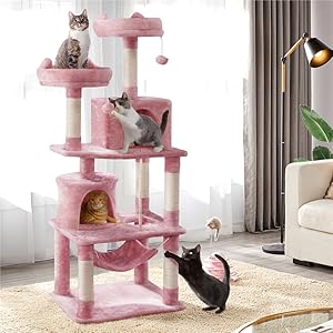 Amazon Com Yaheetech 62 2in Cat Tree Large Cat Tower Cat Activity Center With Hammock Cat Condo Scratching Posts Pink Pet Supplies